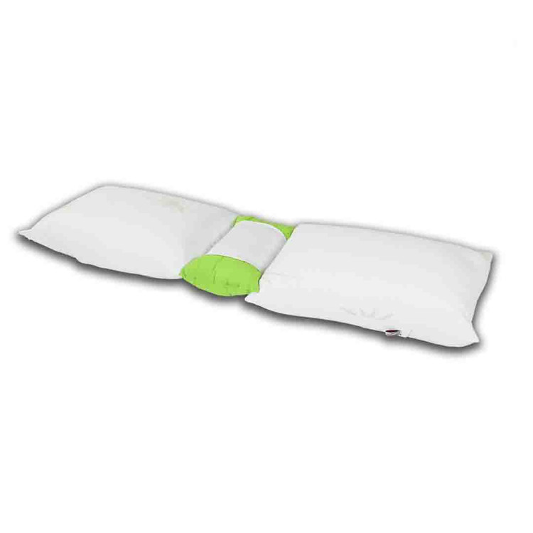 این بالش شامل دو عدد بالش بزرگ در سایز 50*70 سانتیمتر و یک عدد بالش کوچکتر در سایز 40*60 سانتیمتر که توسط یک رابط بین دو بالش بزرگتر قرار گرفته است.