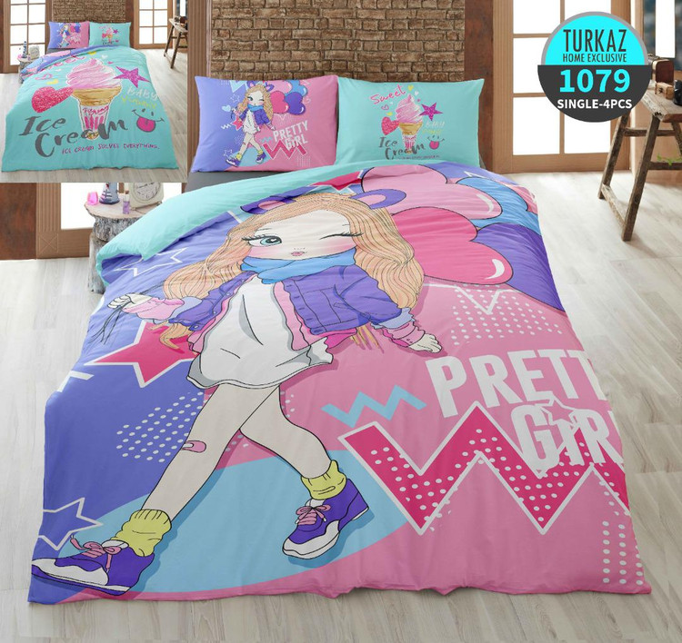 سرویس لحاف روتختی 1 نفره تنسل ترک برند ترکاز 4 تکه شامل 1 عدد لحاف روتختی چاپی دو رویه - 1 عدد کاور تشک چاپی کشدوز شده - 1 عدد روبالشی آکسفورد - 1 عدد روبالشی ساده