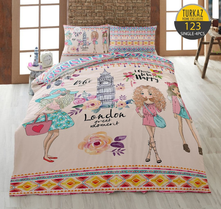 سرویس لحاف روتختی 1 نفره چاپی تنسل برند ترکاز(Turkaz) کد 123