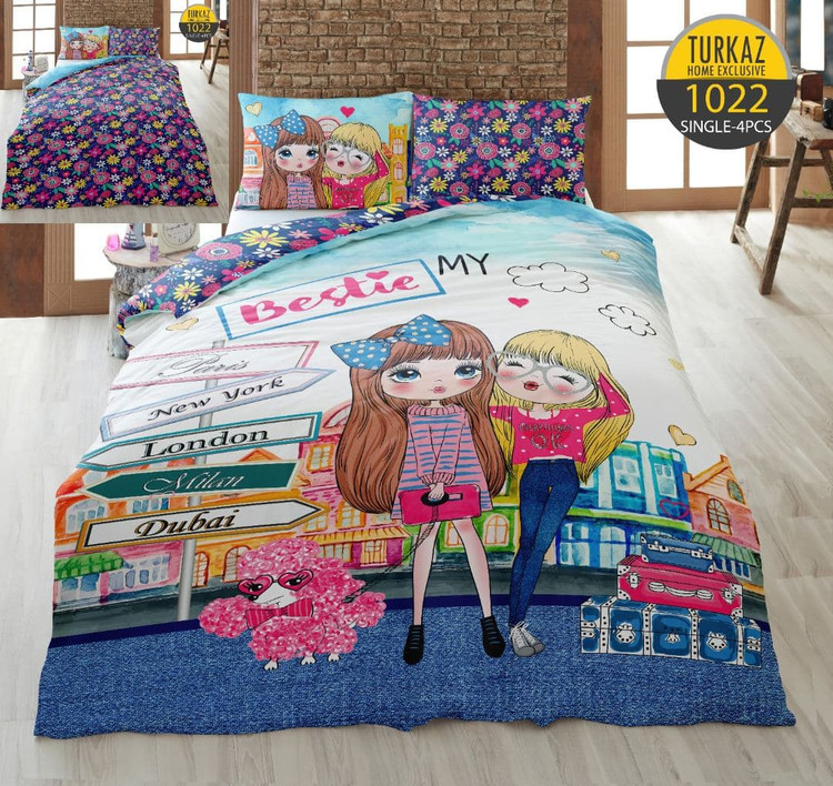 سرویس لحاف روتختی 1 نفره چاپی تنسل برند ترکاز(Turkaz) کد 1022