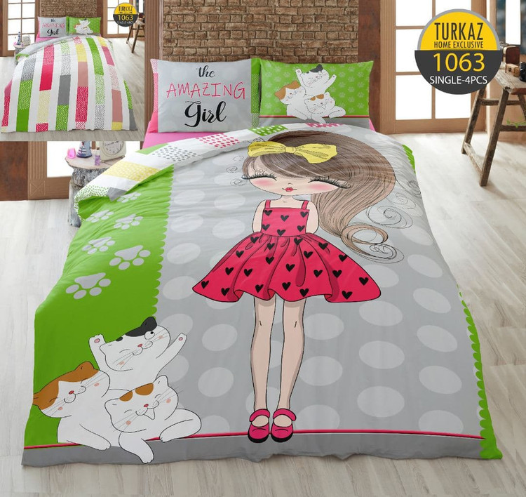 سرویس لحاف روتختی 1 نفره چاپی تنسل برند ترکاز(Turkaz) کد 1063