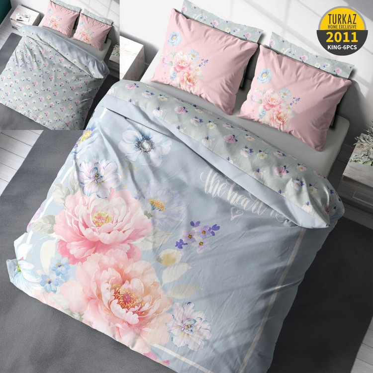 سرویس لحاف روتختی 2 نفره تنسل ترک برند ترکاز 6 تکه شامل 1 عدد لحاف روتختی چاپی دو رویه - 1 عدد کاور تشک چاپی کشدوز شده - 2 عدد روبالشی آکسفورد - 2 عدد روبالشی ساده