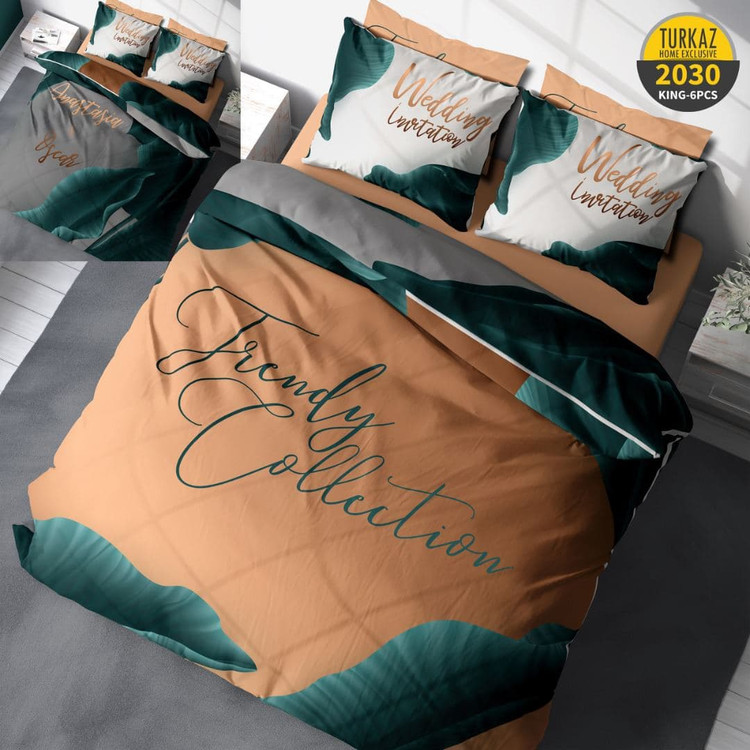 سرویس لحاف روتختی 2 نفره تنسل ترک برند ترکاز 6 تکه شامل 1 عدد لحاف روتختی چاپی دو رویه - 1 عدد کاور تشک چاپی کشدوز شده - 2 عدد روبالشی آکسفورد - 2 عدد روبالشی ساده