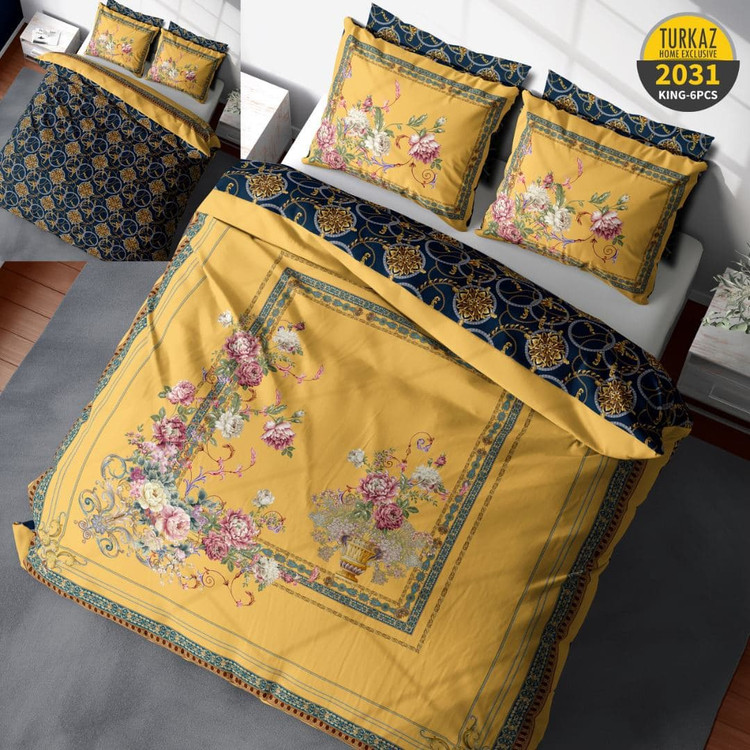 سرویس لحاف روتختی 2 نفره تنسل ترک برند ترکاز 6 تکه شامل 1 عدد لحاف روتختی چاپی دو رویه - 1 عدد کاور تشک چاپی کشدوز شده - 2 عدد روبالشی آکسفورد - 2 عدد روبالشی ساده