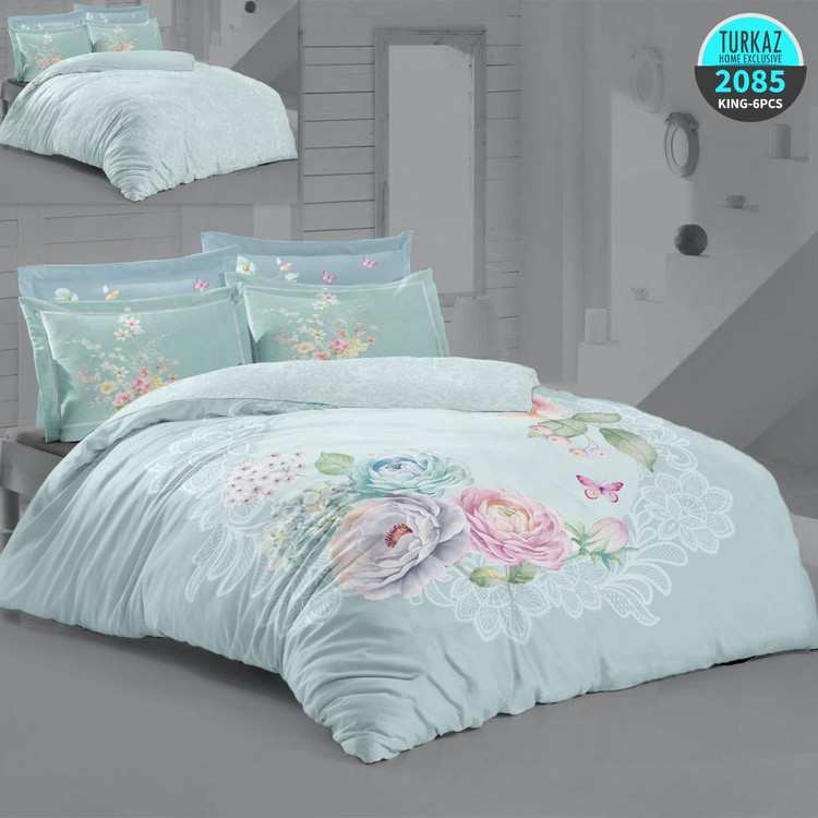سرویس لحاف روتختی 2 نفره تنسل ترک برند ترکاز 6 تکه شامل 1 عدد لحاف روتختی چاپی دو رویه - 1 عدد کاور تشک چاپی کشدوز شده - 2 عدد روبالشی آکسفورد - 2 عدد روبالشی ساده