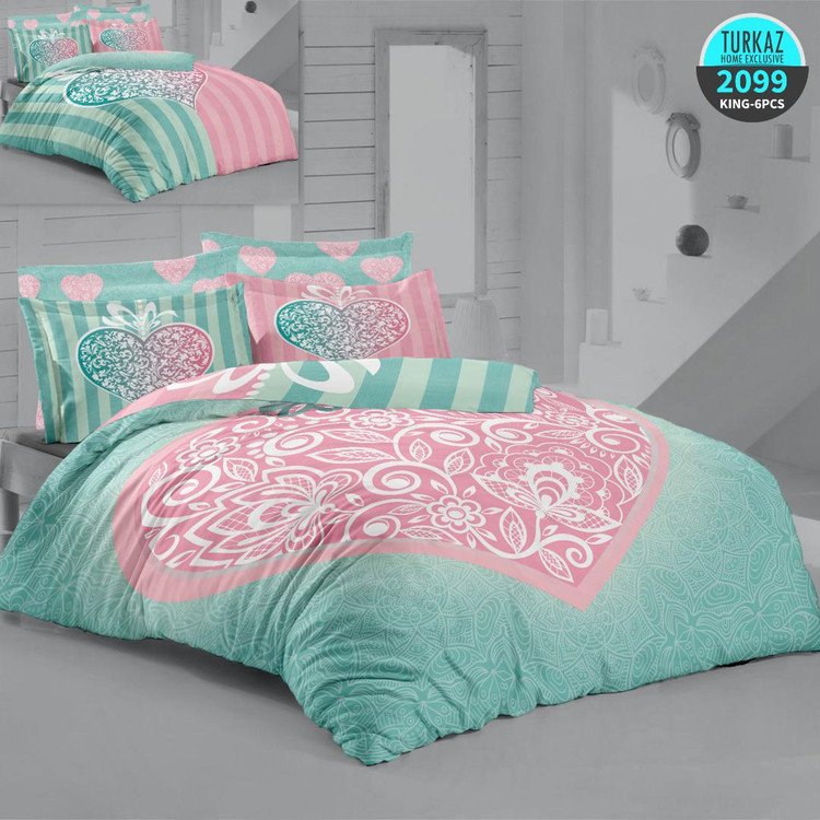 سرویس لحاف روتختی 2 نفره تنسل ترک برند ترکاز 6 تکه شامل 1 عدد لحاف روتختی چاپی دو رویه - 1 عدد کاور تشک چاپی کشدوز شده - 2 عدد روبالشی آکسفورد - 2 عدد روبالشی ساده