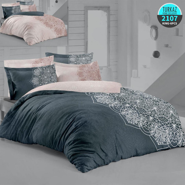 سرویس لحاف روتختی 2 نفره تنسل ترک برند ترکاز 6 تکه شامل 1 عدد لحاف روتختی چاپی دو رویه - 1 عدد کاور تشک چاپی کشدوز شده - 2 عدد روبالشی آکسفورد - 2 عدد روبالشی ساده