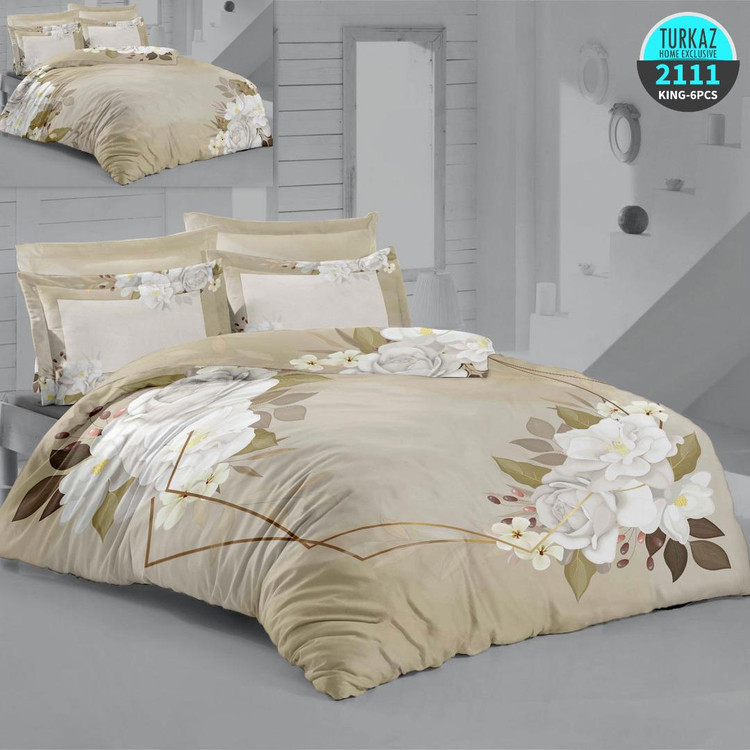 سرویس لحاف روتختی 2 نفره تنسل ترک برند ترکاز 6 تکه شامل 1 عدد لحاف روتختی چاپی دو رویه - 1 عدد کاور تشک چاپی کشدوز شده - 2 عدد روبالشی آکسفورد - 2 عدد روبالشی ساده