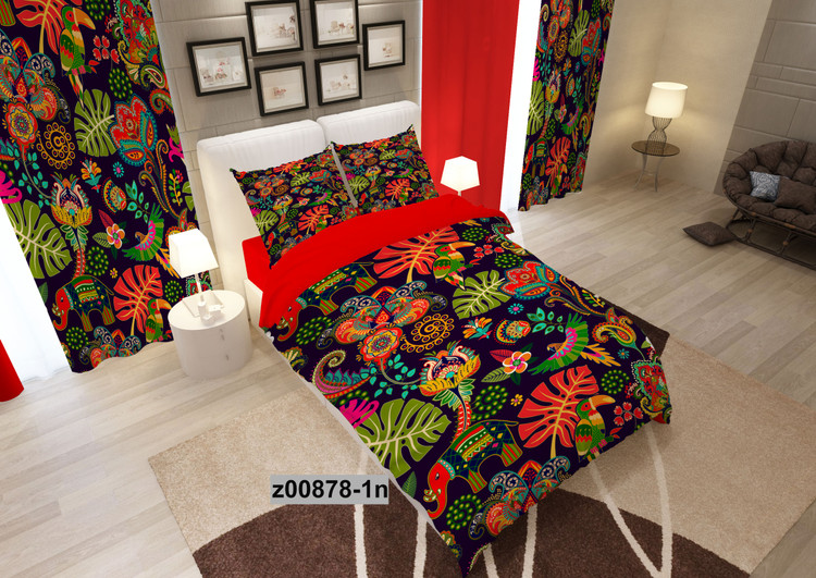 کاور فرش کشدار و پرده پانچ ست طرح روتختی در ابعاد مختلف