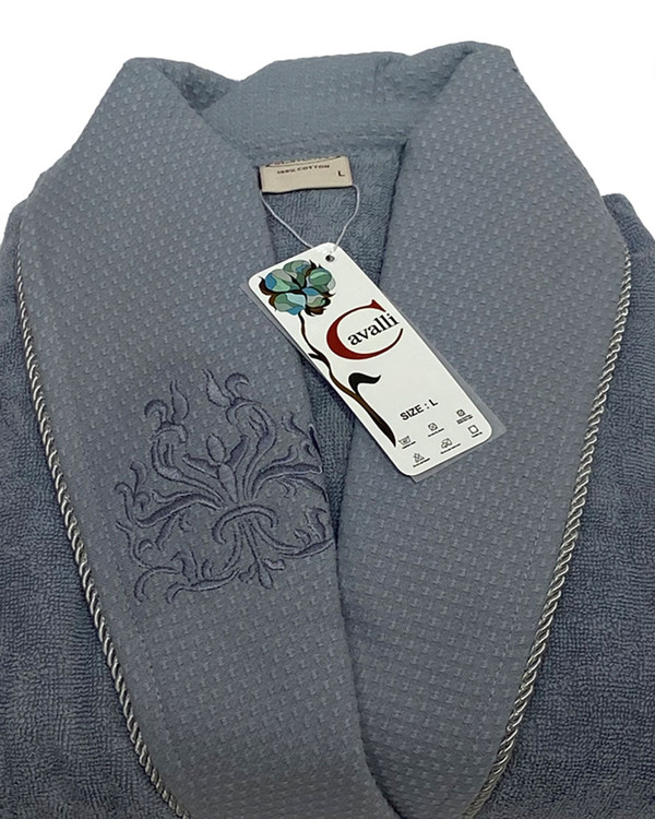 حوله پالتویی (تن پوش) کاوالی سایز لارج طرح یقه برجسته رنگ دودی
