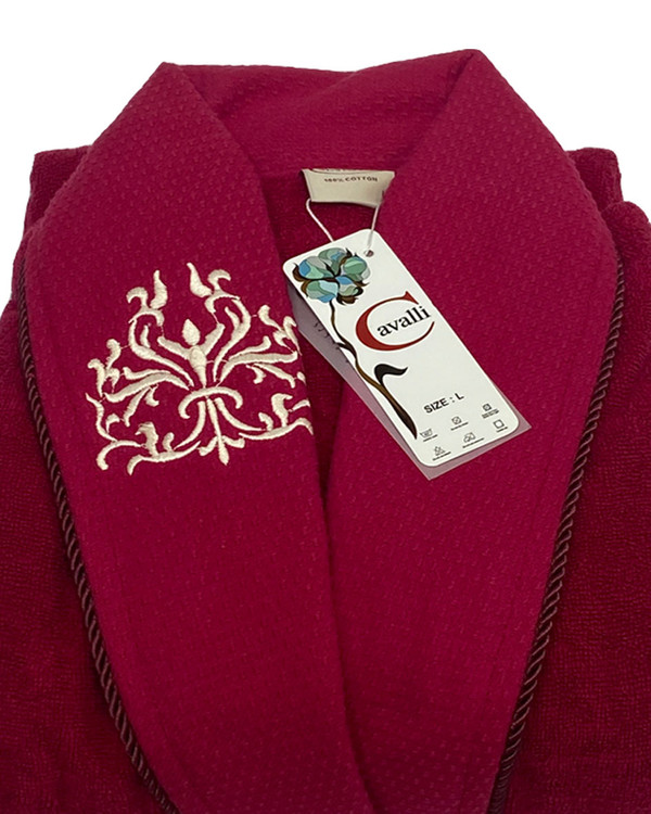 حوله پالتویی (تن پوش) کاوالی سایز لارج طرح یقه برجسته رنگ سرخابی