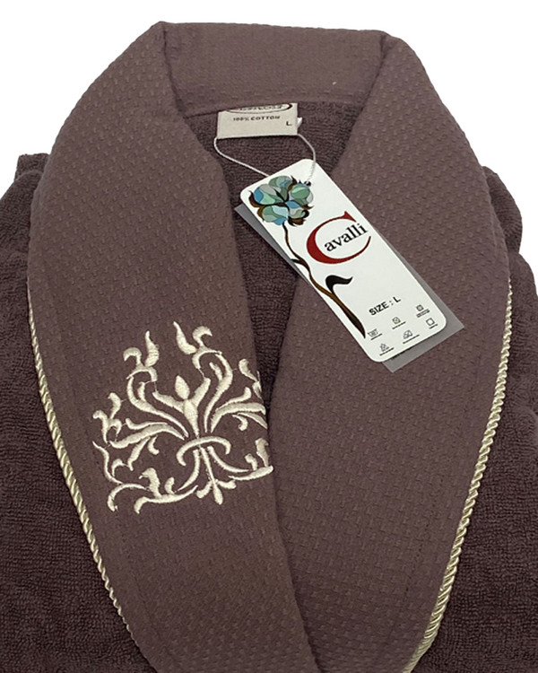 حوله پالتویی (تن پوش) کاوالی سایز لارج طرح یقه برجسته رنگ شکلاتی
