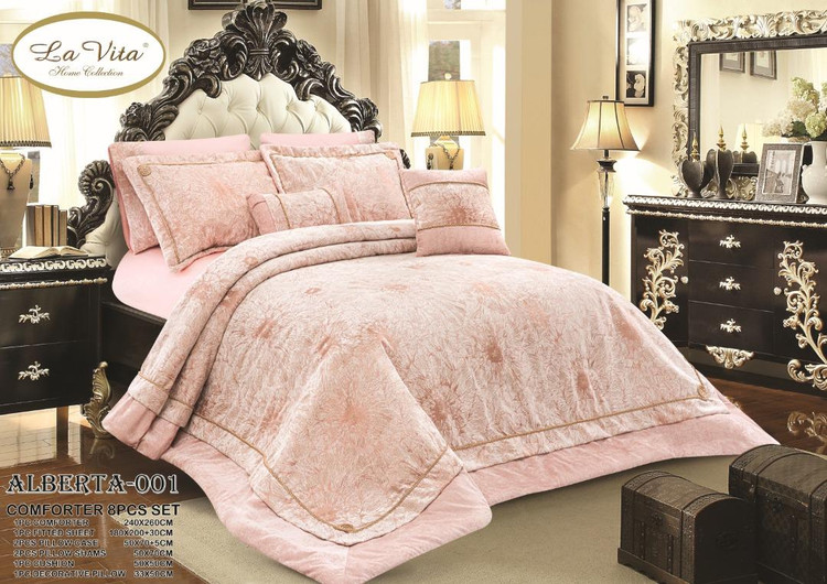 سرویس لحاف روتختی 2 نفره ترک برند لاویتا مدل ALBERTA - برند لاویتا ترکیه - جنس مخمل پتینه - جنس الیاف ویرجین 350 گرم(متر مربع) آنتی باکتریال