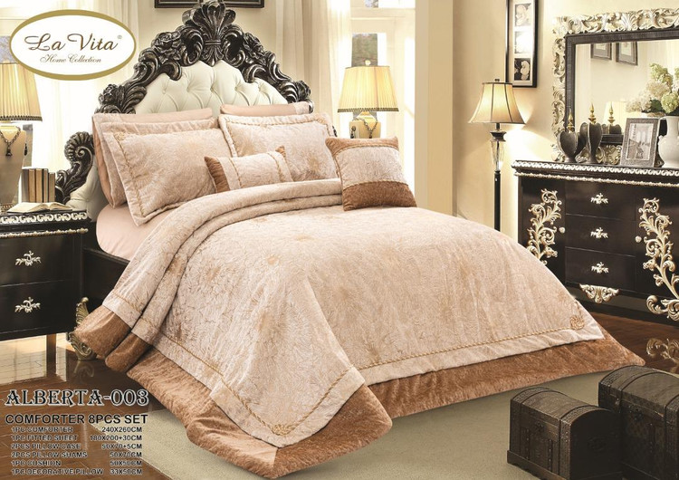 سرویس لحاف روتختی 2 نفره ترک برند لاویتا مدل ALBERTA - برند لاویتا ترکیه - جنس مخمل پتینه - جنس الیاف ویرجین 350 گرم(متر مربع) آنتی باکتریال