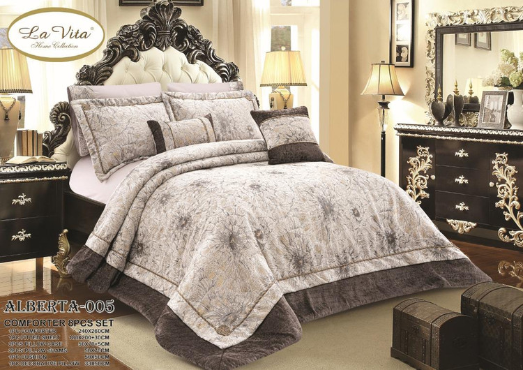سرویس لحاف روتختی 2 نفره ترک برند لاویتا مدل ALBERTA - برند لاویتا ترکیه - جنس مخمل پتینه - جنس الیاف ویرجین 350 گرم(متر مربع) آنتی باکتریال