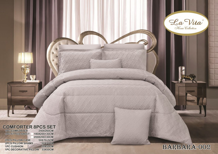 سرویس لحاف روتختی 2 نفره ترک برند لاویتا مدل BARBARA - جنس کتان جیر چرخکاری شده - جنس الیاف ویرجین 350 گرم(متر مربع) آنتی باکتریال