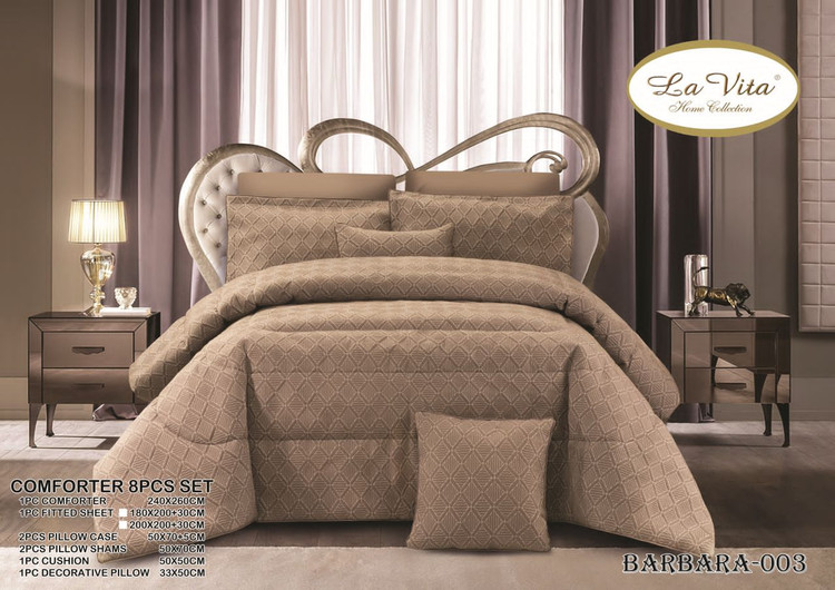 سرویس لحاف روتختی 2 نفره ترک برند لاویتا مدل BARBARA - جنس کتان جیر چرخکاری شده - جنس الیاف ویرجین 350 گرم(متر مربع) آنتی باکتریال