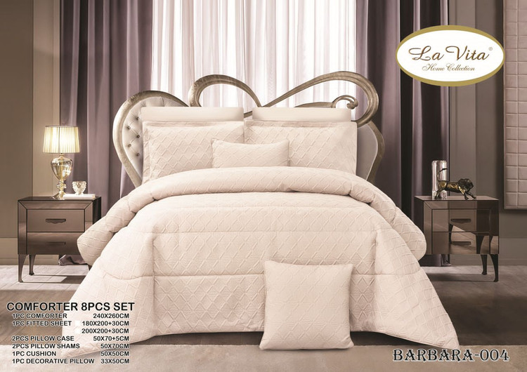 سرویس لحاف روتختی 2 نفره ترک برند لاویتا مدل BARBARA - جنس کتان جیر چرخکاری شده - جنس الیاف ویرجین 350 گرم(متر مربع) آنتی باکتریال