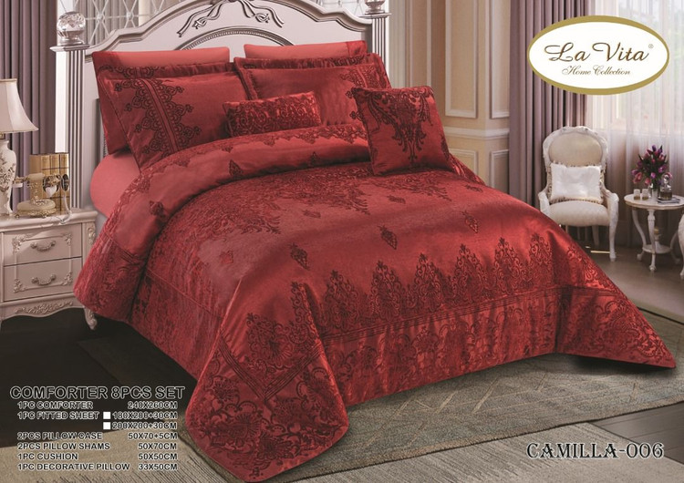 سرویس لحاف روتختی 2 نفره ترک برند لاویتا مدل CAMILLA - جنس مخمل دانتل دوزی شده - جنس الیاف ویرجین 350 گرم(متر مربع) آنتی باکتریال