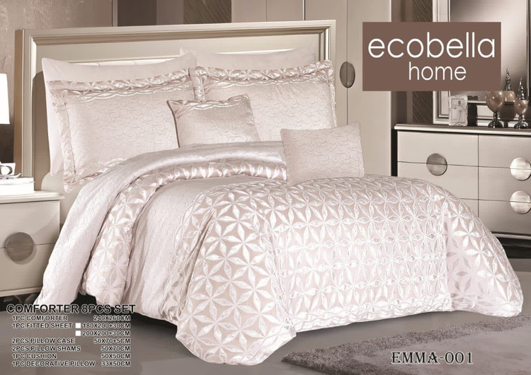 سرویس لحاف روتختی 2 نفره ترک برند اکوبلا مدل EMMA - جنس مخمل شانل - جنس الیاف ویرجین 350 گرم(متر مربع) آنتی باکتریال