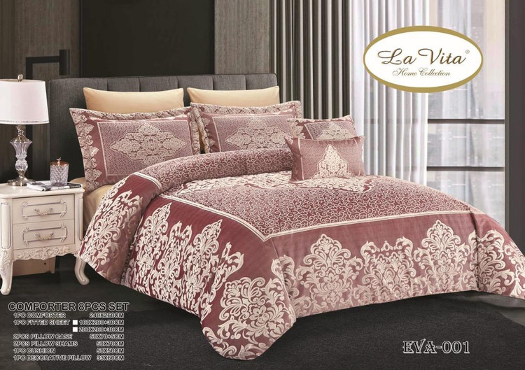 سرویس لحاف روتختی 2 نفره ترک برند لاویتا مدل EVA - جنس مخمل جاکارد - جنس الیاف ویرجین 350 گرم(متر مربع) آنتی باکتریال