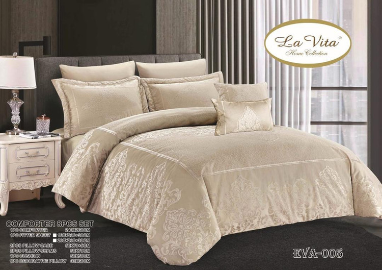 سرویس لحاف روتختی 2 نفره ترک برند لاویتا مدل EVA - جنس مخمل جاکارد - جنس الیاف ویرجین 350 گرم(متر مربع) آنتی باکتریال
