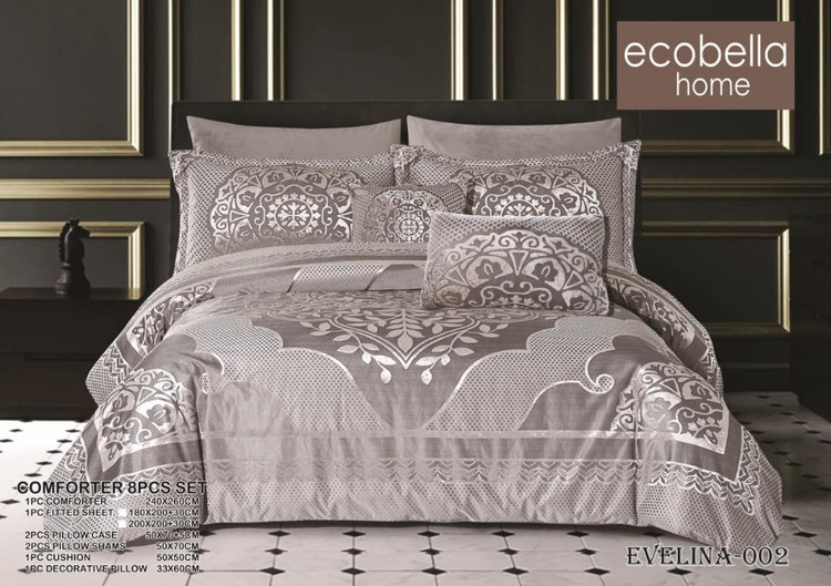 سرویس لحاف روتختی 2 نفره ترک برند اکوبلا مدل EVELINA - جنس مخمل جاکارد - جنس الیاف ویرجین 350 گرم(متر مربع) آنتی باکتریال