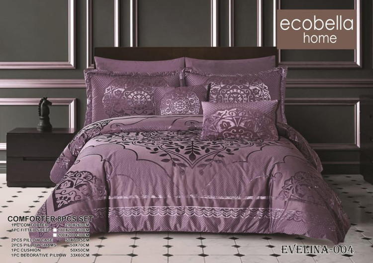 سرویس لحاف روتختی 2 نفره ترک برند اکوبلا مدل EVELINA - جنس مخمل جاکارد - جنس الیاف ویرجین 350 گرم(متر مربع) آنتی باکتریال