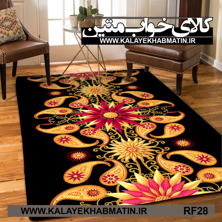 روفرشی کشدار (کاور فرش) کالای خواب متین - محصول کالای خواب متین - جنس پارچه مخمل ابریشمی نانو (شانل) بافت پارچه با تراکم و گراماژ بالا و چاپ دیجیتال کش دوزی در چهار گوشه محصول جهت فیکس شدن روفرشی روی فرش