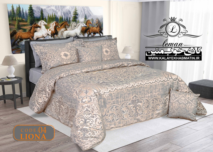سرویس لحاف روتختی 2 نفره ترک برند لمان مدل Liona - جنس مخمل پتینه ترک - جنس الیاف ویرجین 350 گرم(متر مربع) آنتی باکتریال