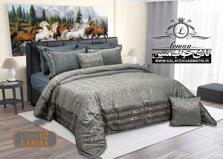 سرویس لحاف روتختی 2 نفره ترک برند لمان مدل Laresa - جنس مخمل جاکارد ترک - جنس الیاف ویرجین 350 گرم(متر مربع) آنتی باکتریال