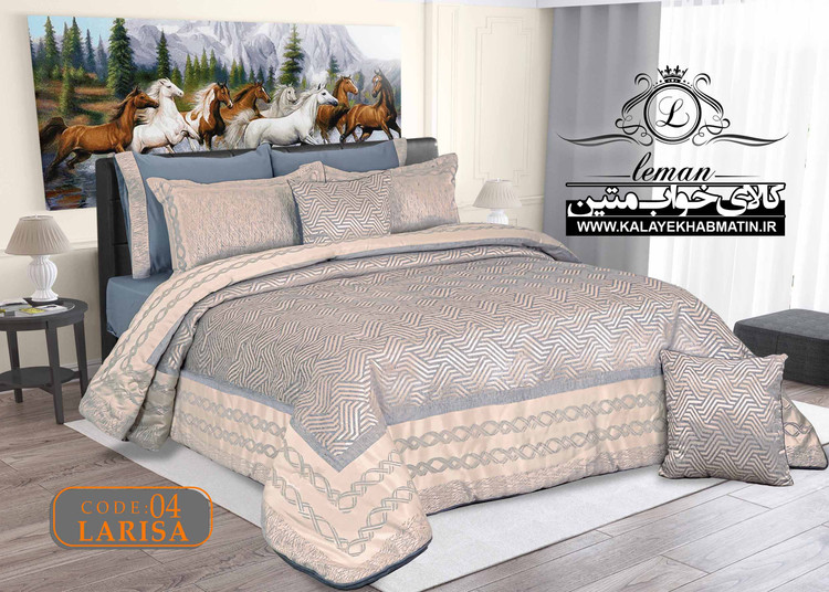 سرویس لحاف روتختی 2 نفره ترک برند لمان مدل Laresa - جنس مخمل جاکارد ترک - جنس الیاف ویرجین 350 گرم(متر مربع) آنتی باکتریال