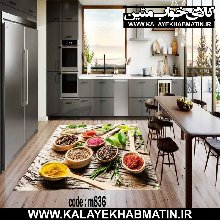 روفرشی کشدار آشپزخانه کالای خواب متین (کاور فرش) - محصول کالای خواب متین - جنس پارچه مخمل ابریشمی (شانل) بافت پارچه با تراکم و گراماژ بالا و چاپ دیجیتال کش دوزی در چهار گوشه محصول جهت فیکس شدن روفرشی روی فرش